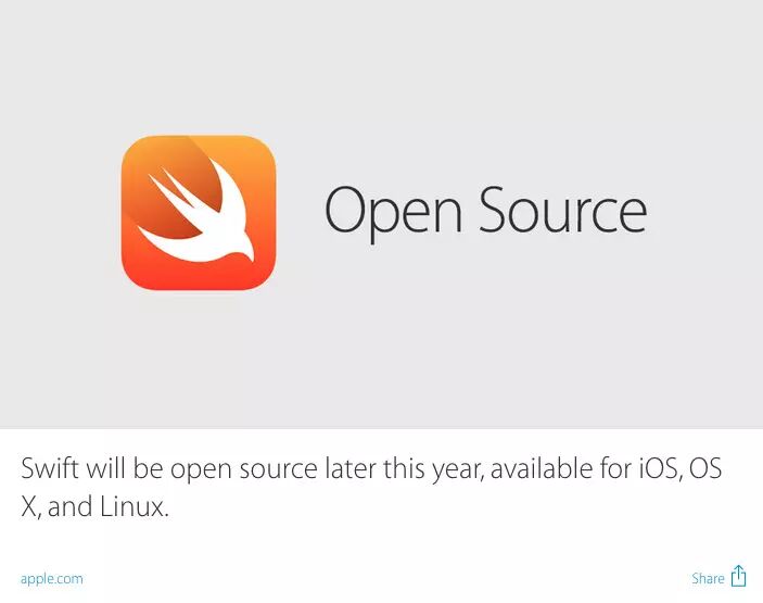 昨晚 HN 和 Reddit 上就有了 Swift 正式开源的消息了。苹果并且启用了新的官网:Swift.org。