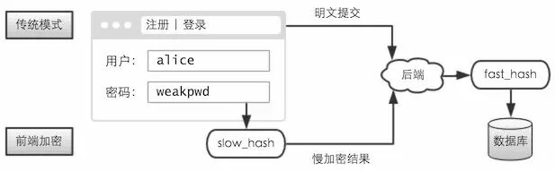 过去,提交的是明文密码;现在,提交的则是明文密码的「慢加密结果」。无论是注册,还是登陆。