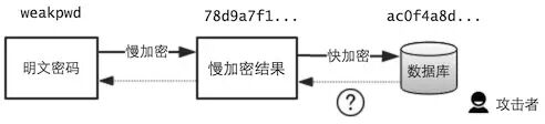 攻击者可以用这套算法,把常用词组的「慢加密结果」提前算出来,制作成一个「新字典」。将来拖库后,就可以直接跑这个新字典了。