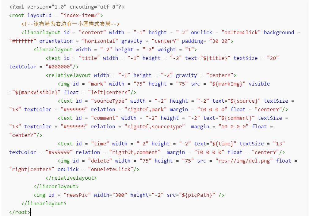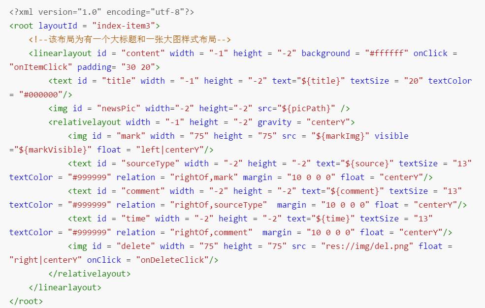 根元素是root,主要指定该布局文件的唯一标识(该标识在API接口中会用到)。