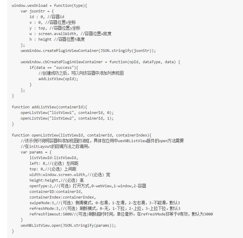 2.了解uexNBListView的API接口,大致分为初始化布局,设置数据,打开列表,列表操作类。