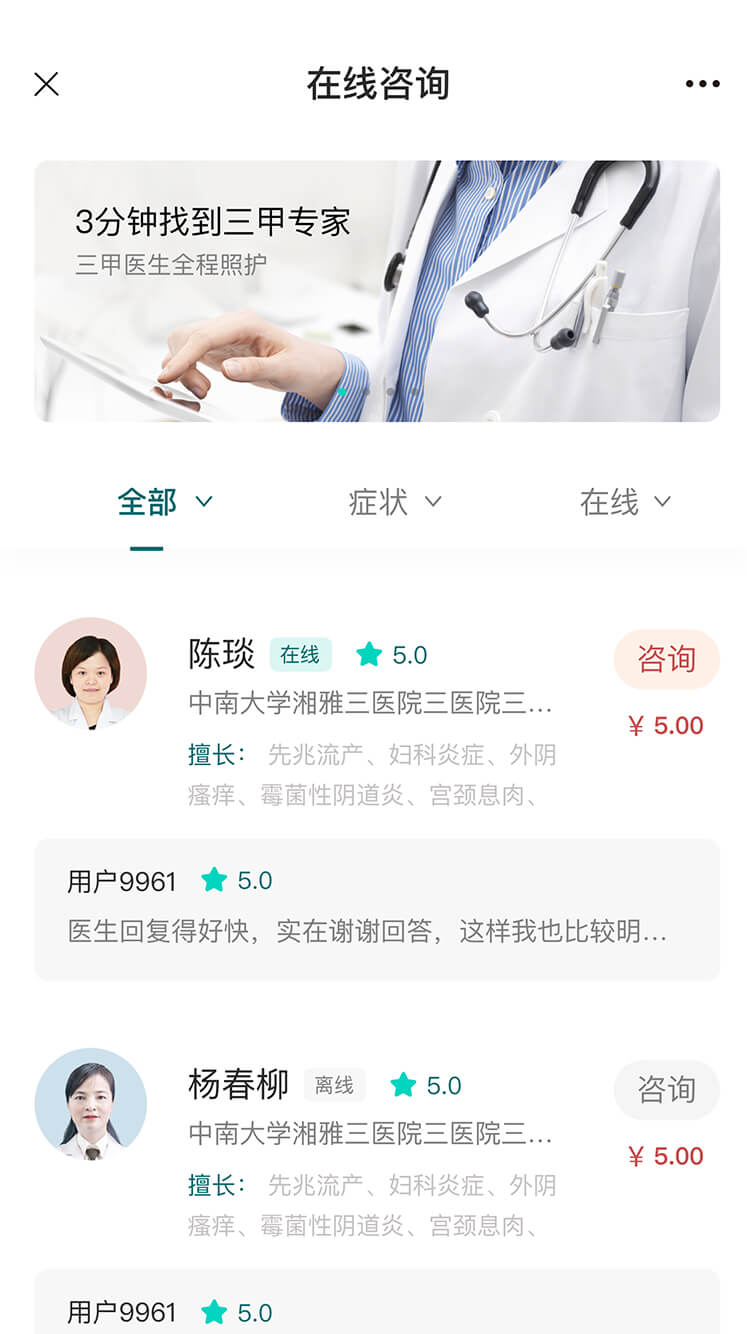 在线医生咨询分为PC管理,医生端app,用户端小程序结合的一整套的解决方案。
